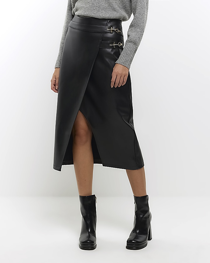 Product Item: Black faux leather online skirt river island