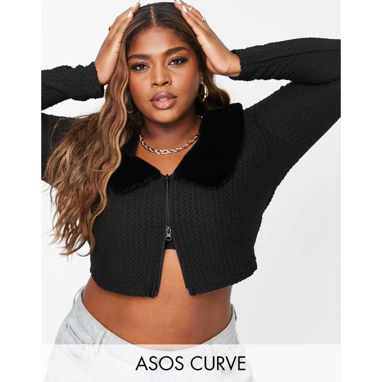 Black sweater online with fur collar