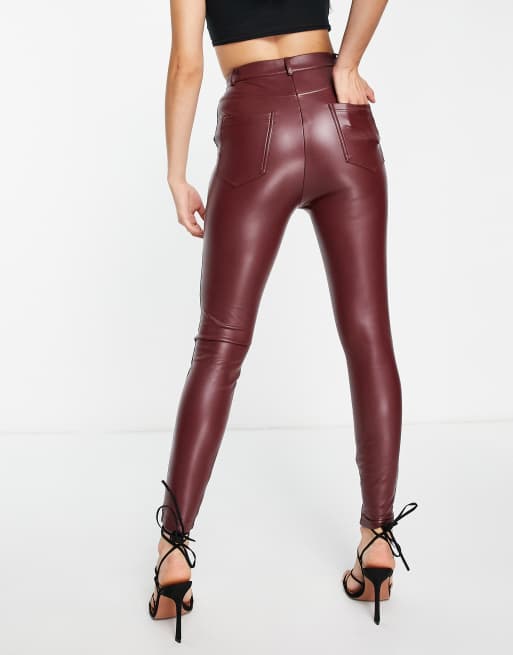 Burgundy leather online look leggings