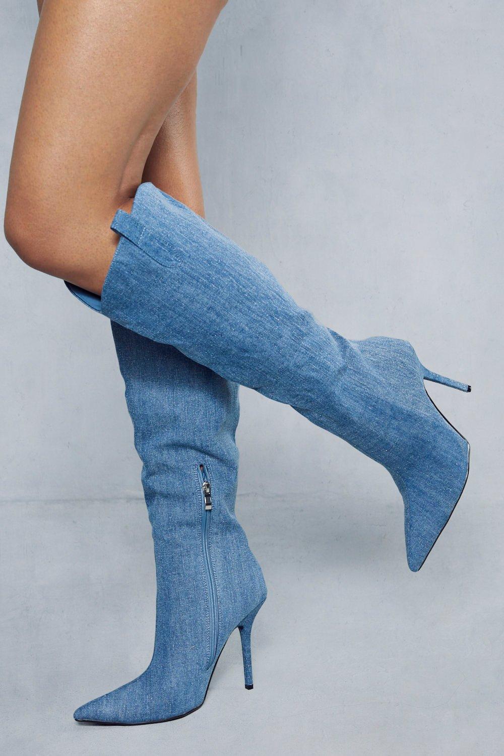 Light blue online denim boots