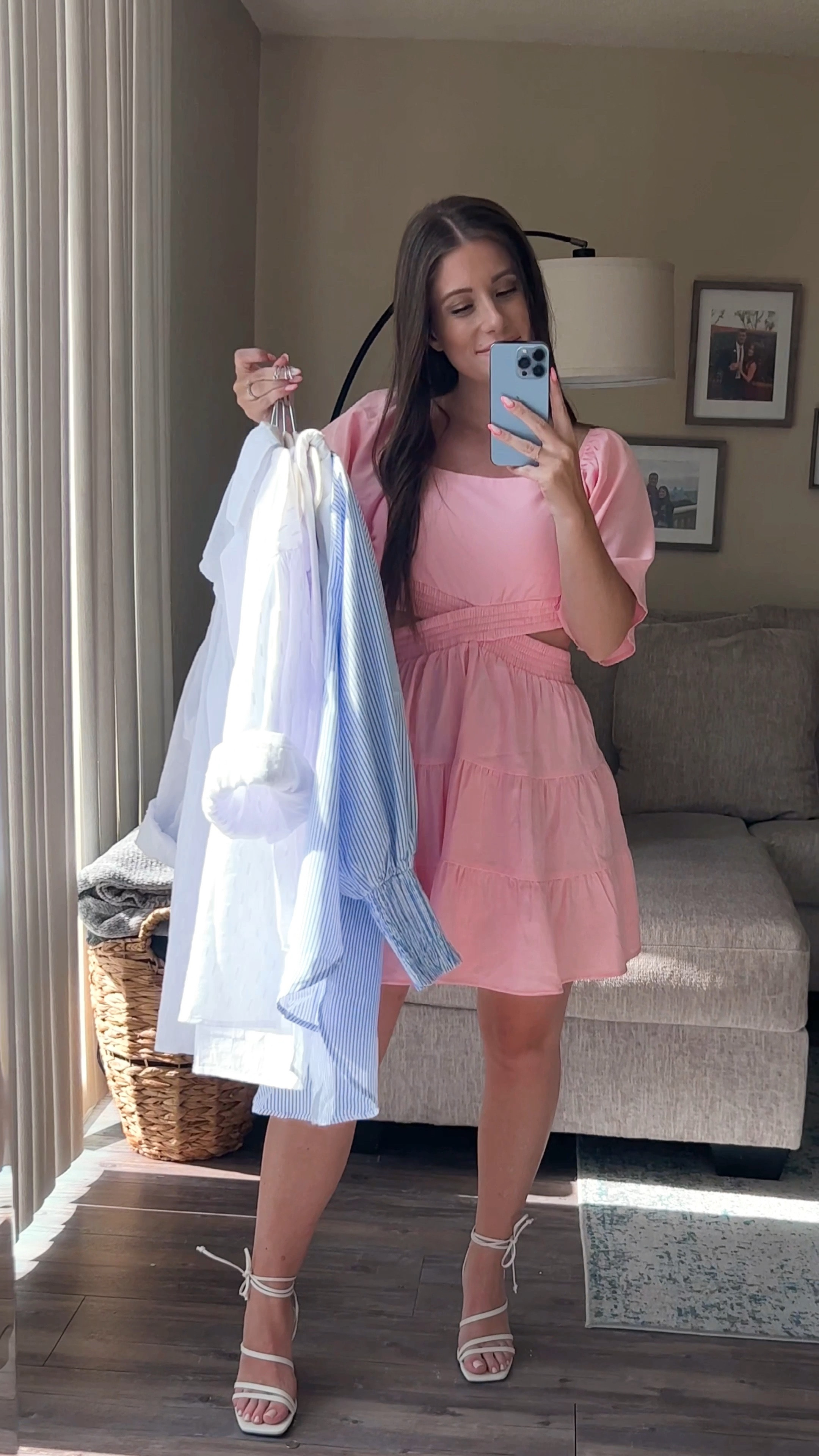 Product Item: Peach dress online with white shoes
