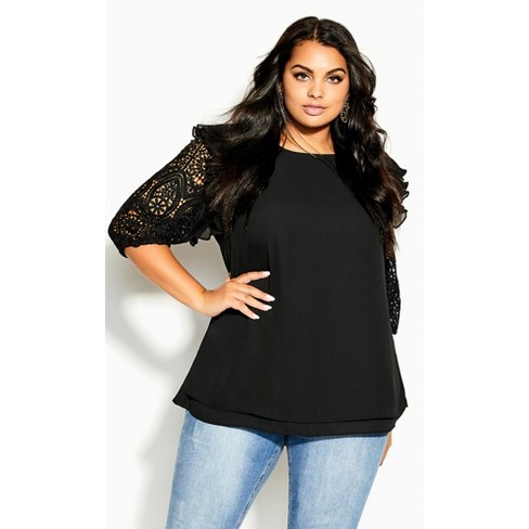 Plus size online black lace top