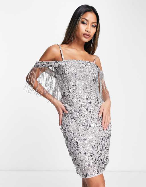 Silver dress online with tassels