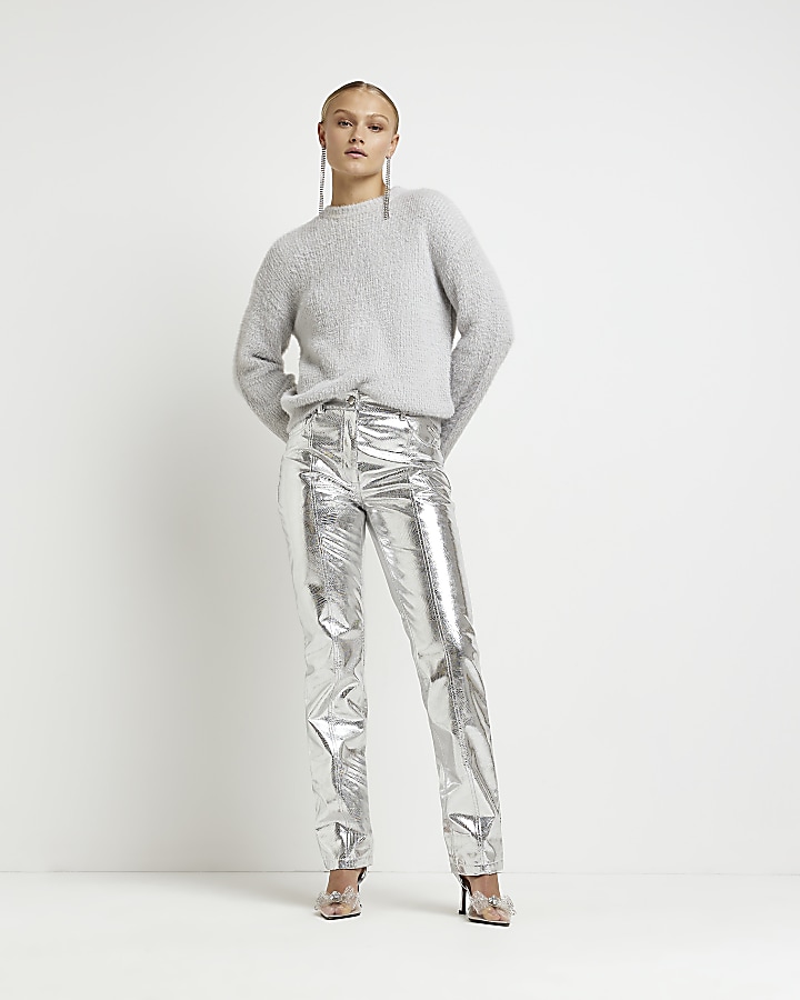 Silver faux online leather pants