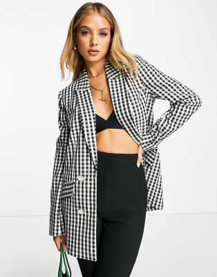 White and online black check blazer
