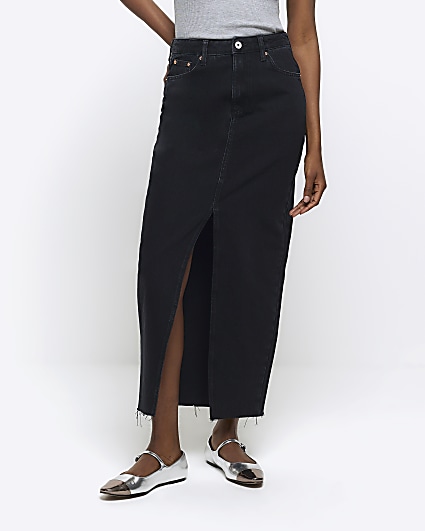 Product Item: Black denim midi online skirt river island