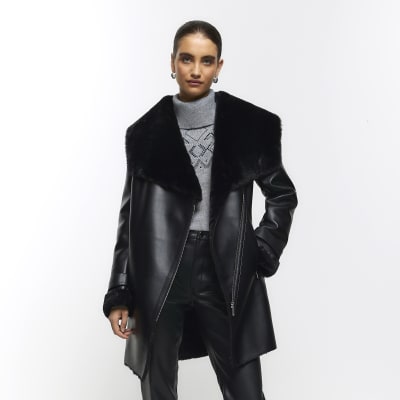 Black faux online leather shearling jacket