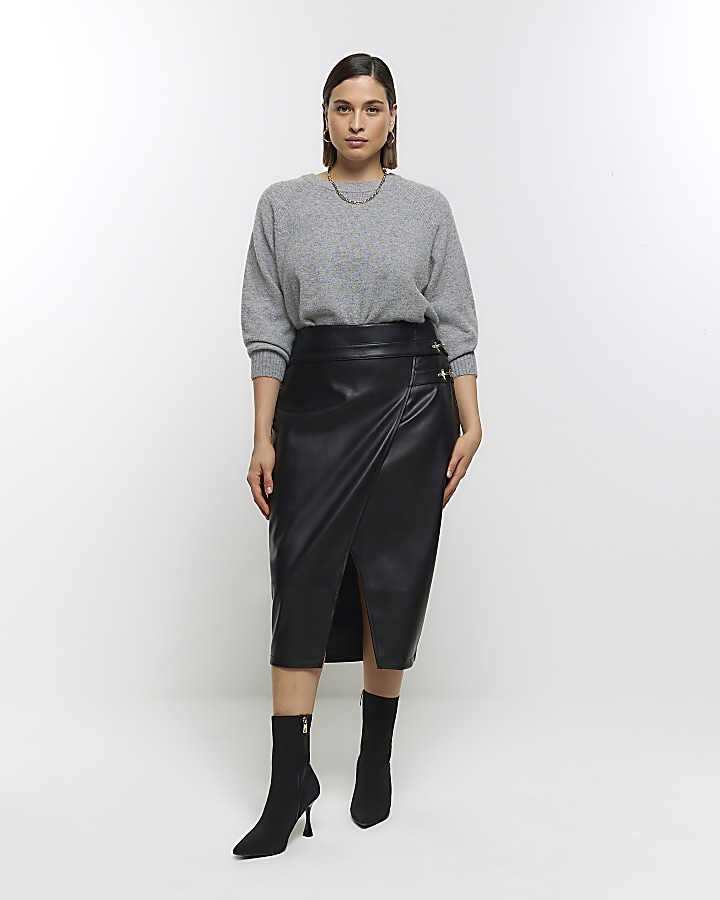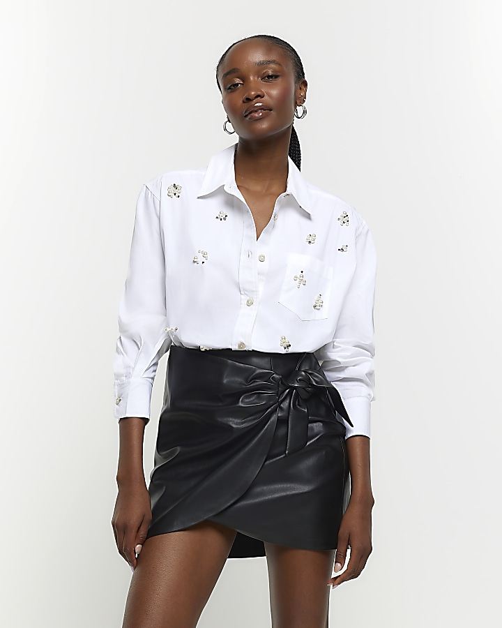 Black faux leather online skirt river island