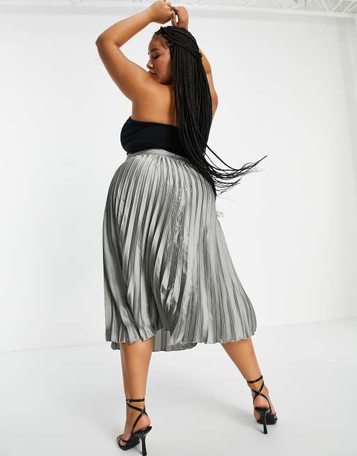 Plus size online silver pleated skirt