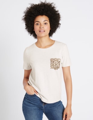 T shirt online with sequin pocket