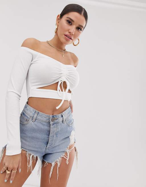 White bardot crop online top long sleeve