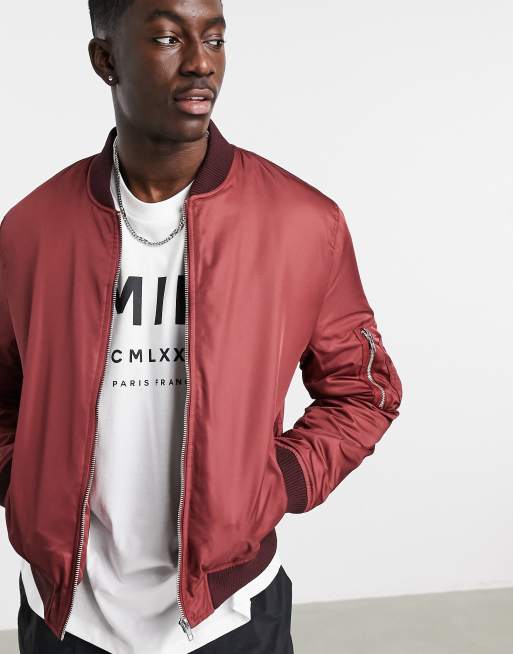 Asos burgundy online bomber jacket