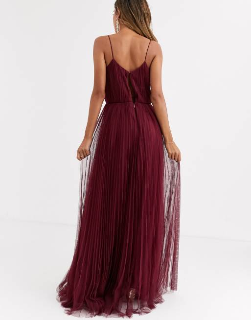 Asos cami pleated online tulle maxi dress