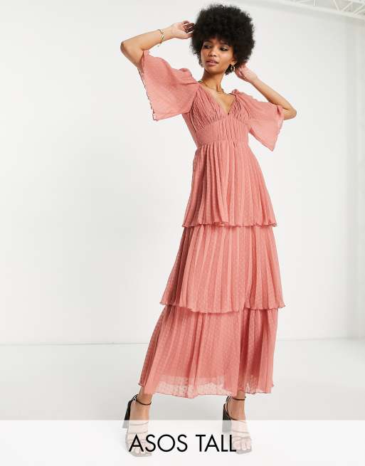 Product Item: Asos design deep plunge online tiered midi prom dress