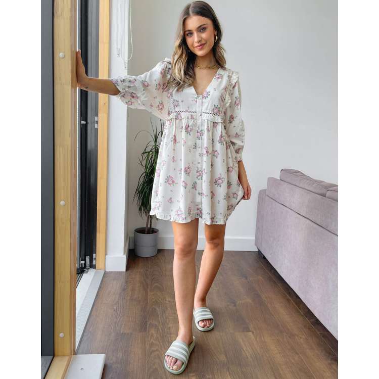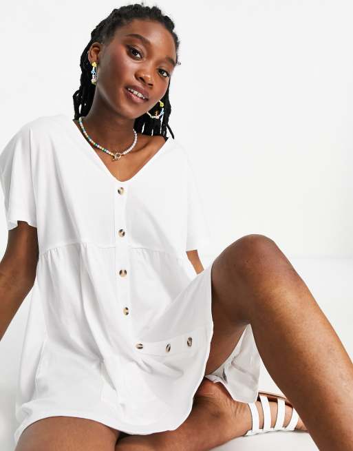 Asos design v neck online button through mini smock dress